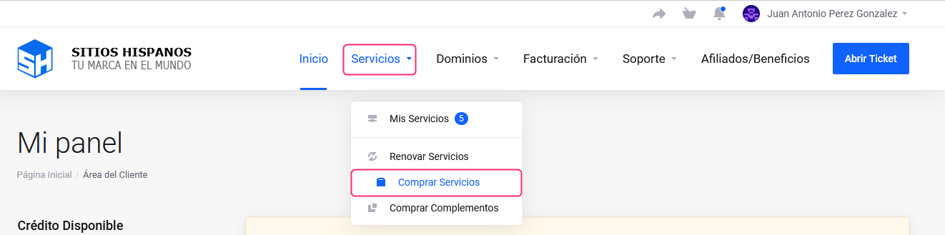 Log into your Client Area. If you don’t remember how to log in, follow this link: Como acceder al Área de Cliente