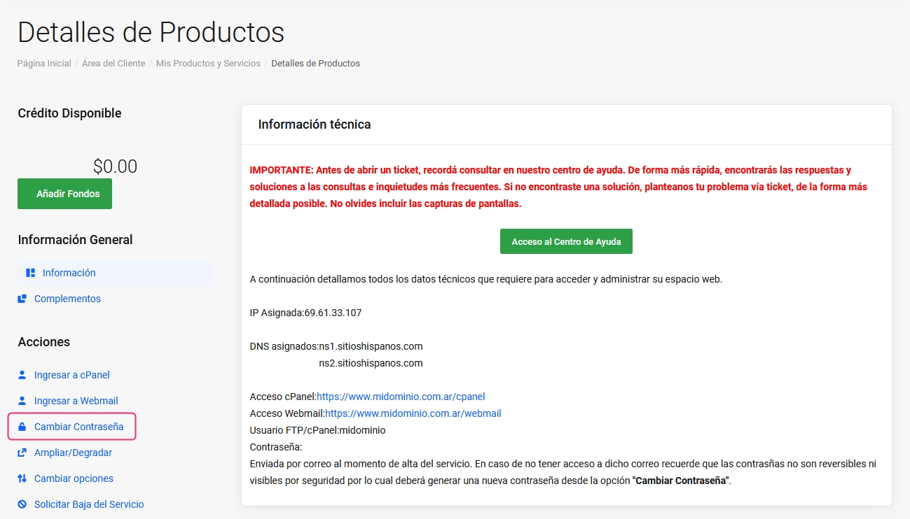 Log in to your Client Area. If you don't remember how, follow this link: Como acceder al Área de Cliente