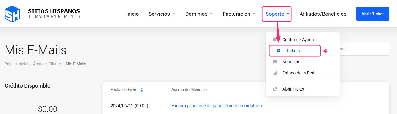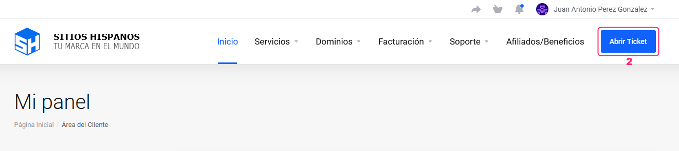 1. Log in to your Client Area. If you don't remember how, follow this link: [Como acceder al Área de Cliente](https://help.sitioshispanos.com/menu-principal/guias/area-de-cliente/acceso-al-area-de-clientes)