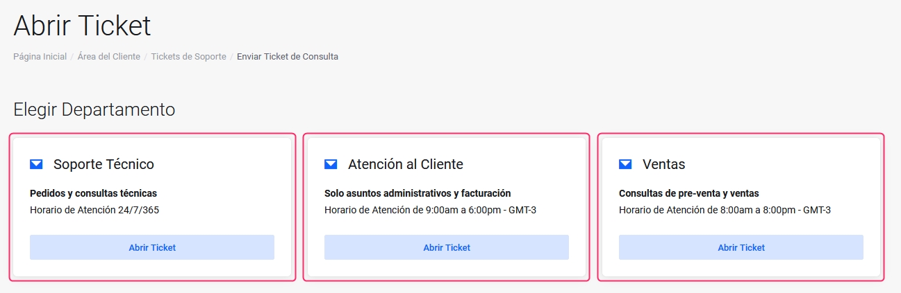You'll find three support departments. Open a ticket in the right one, and we'll get back to you soon.