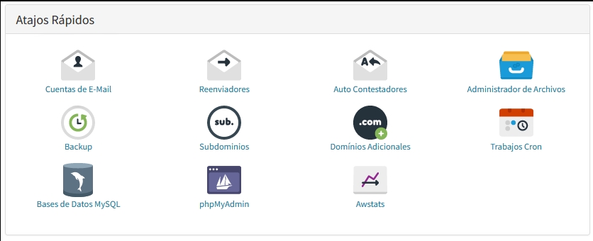 At the bottom of the same screen, you will see the Quick Shortcuts box. Clicking on any of the icons will also take you to the control panel of your account.