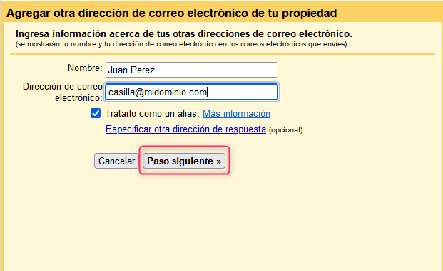 Fill in your account details as shown in the image, adding your domain when necessary. With this, you will have added your new account to Gmail.