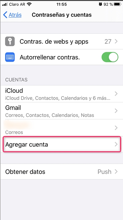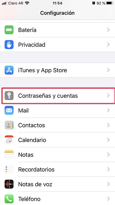 Go to Settings and then to Passwords & Accounts