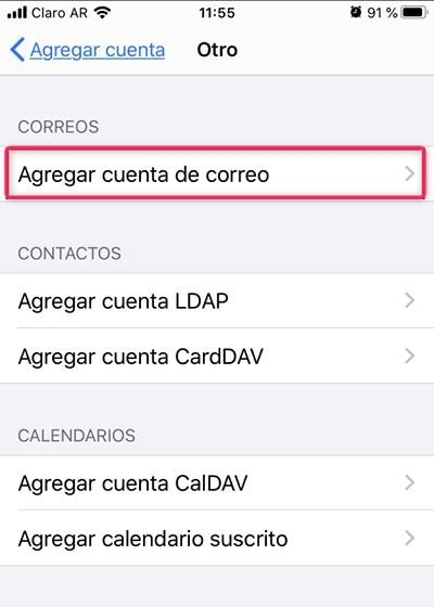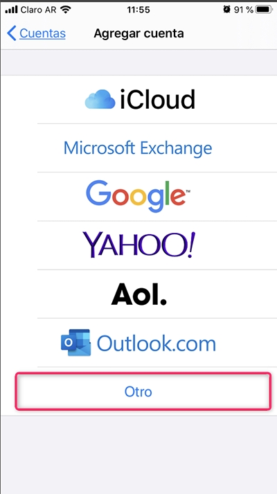 Inside Other, go to Add Mail Account