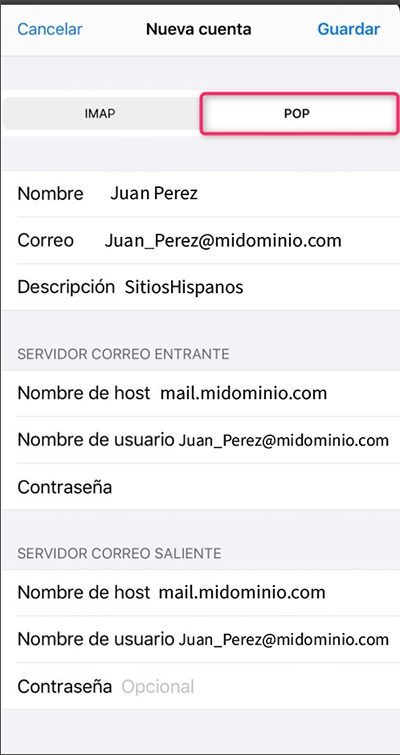 Select whether your account will be IMAP or POP and then configure it as follows:
