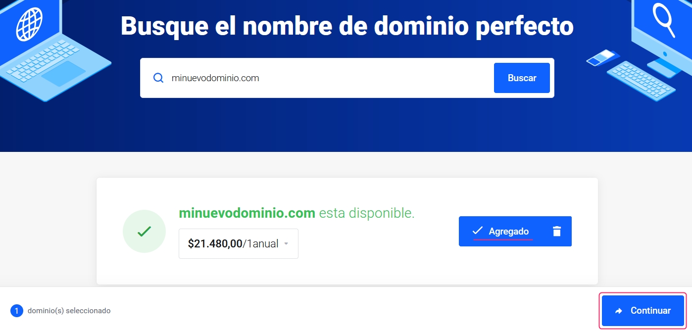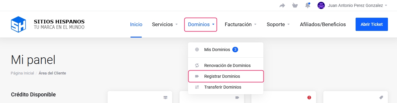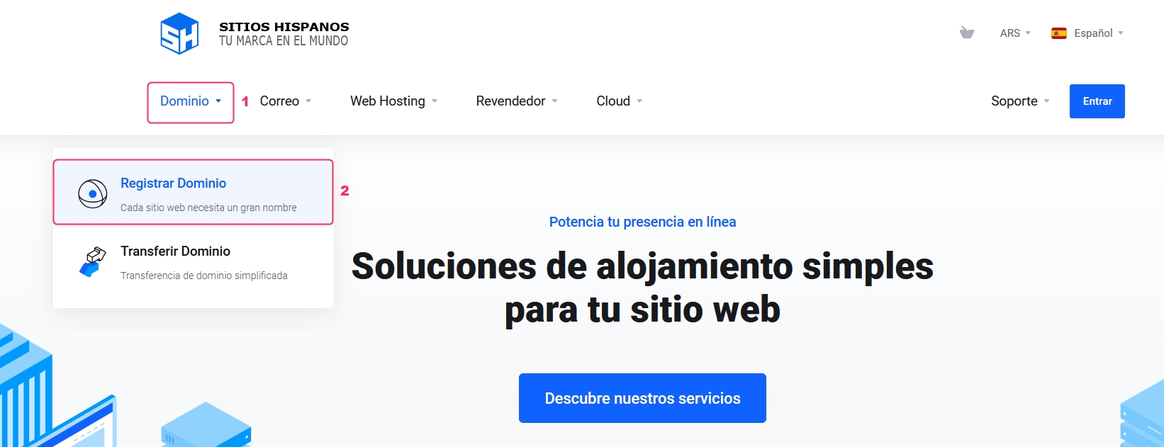 On our website www.sitioshispanos.com, go to Domain => Register Domain.