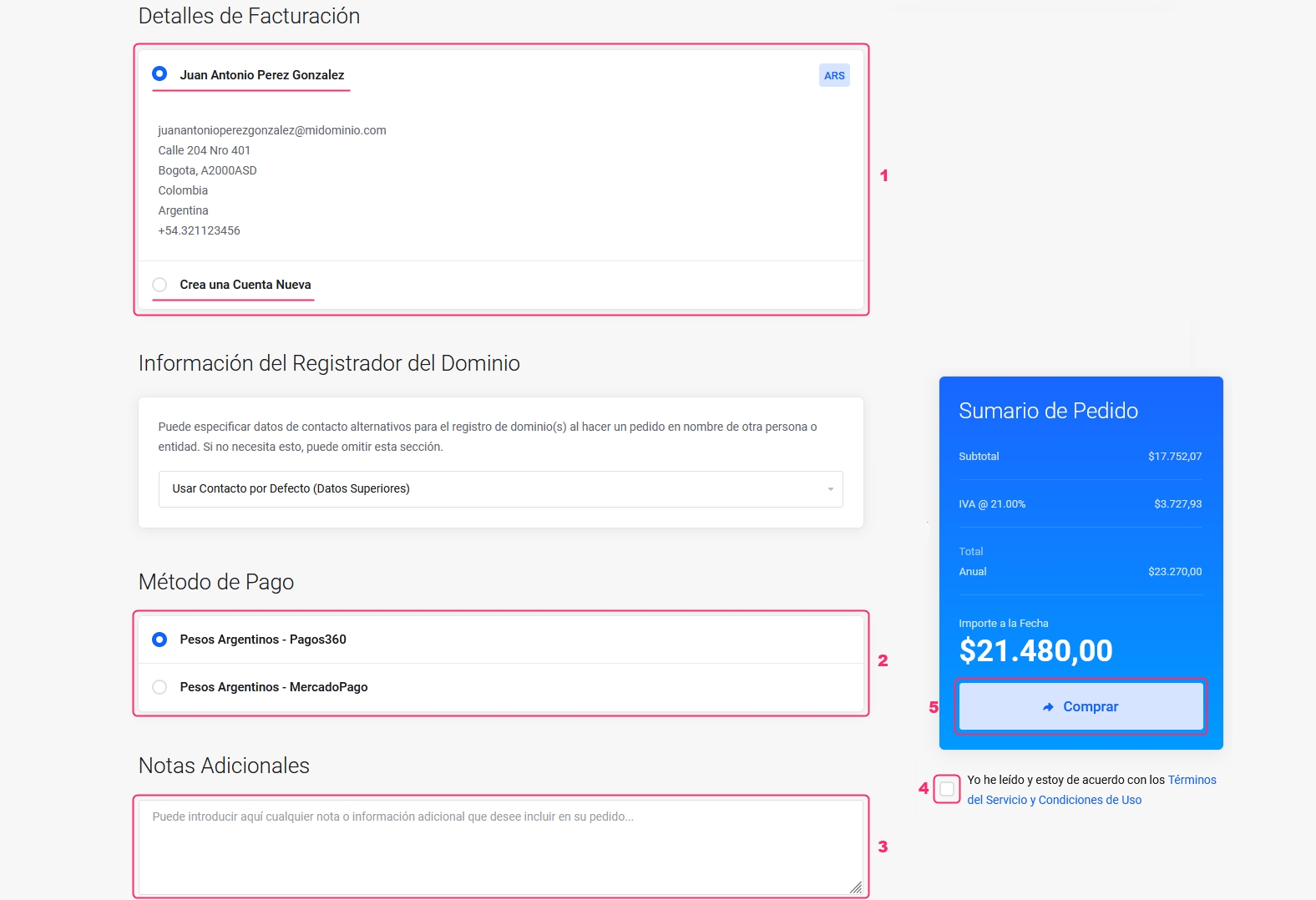 Below, you will see the account that will make the purchase. If you are logged into your Client Area, you will see your details. If you do not have an account already created, you can create one by choosing the option Create a New Account.