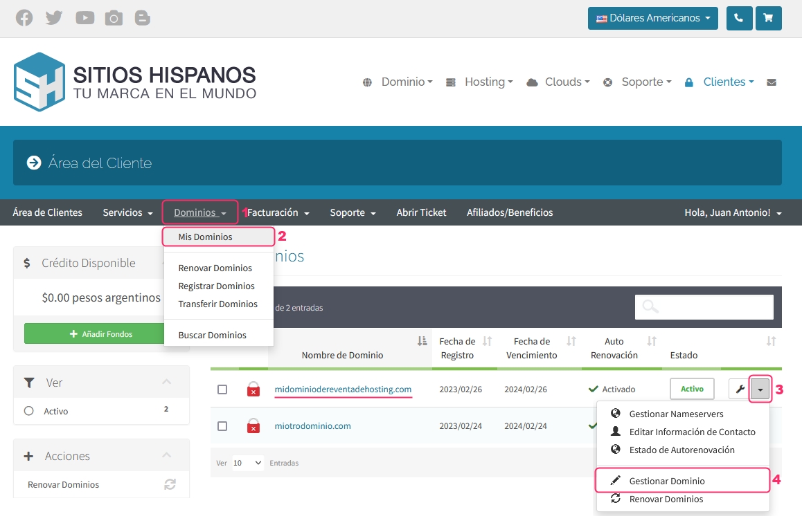 To transfer a domain to an external domain provider, make sure it meets certain requirements. Log in to your Client Area and follow these steps: