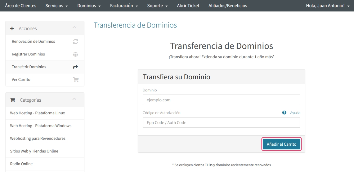 Do not start the transfer process if the domain is close to its expiration date. If the domain is less than 15 days from its expiration date, it is advisable to renew it first.