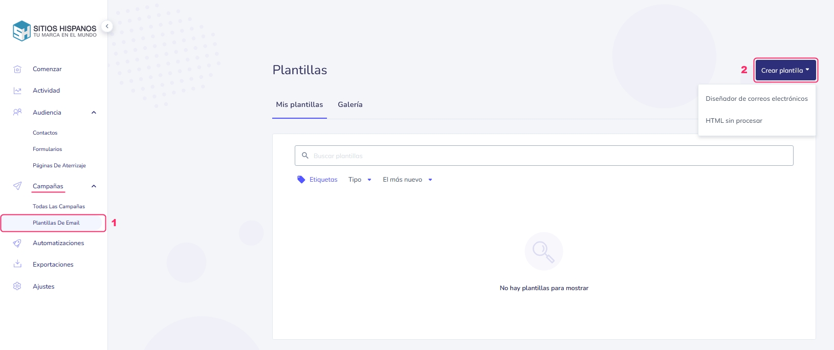 To access the template editor, you must go to Campaigns=>Email Templates. Then, on the right side of the screen, click on the Create template button.