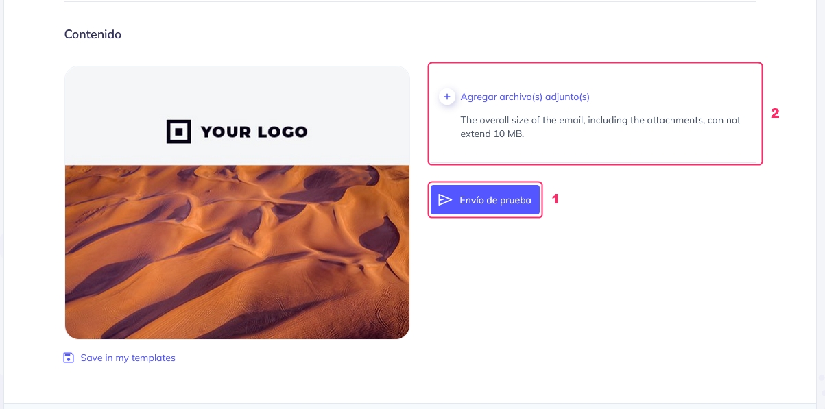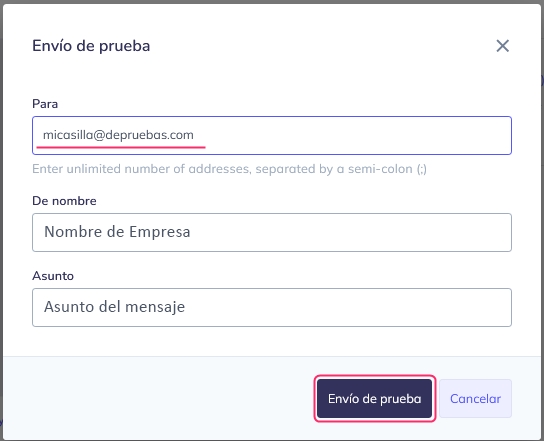 In the second step to send a campaign, after choosing the email template you will be sending, you will see the following screen. You can perform a test by clicking the Send Test button.