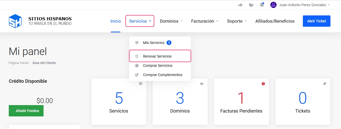 In your Client Area, click on "Services" in the menu and select "Renew Services".