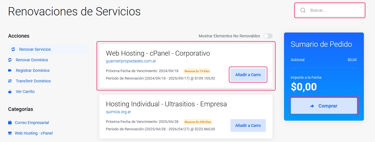 You will see the final price for the renewal of your service on the right