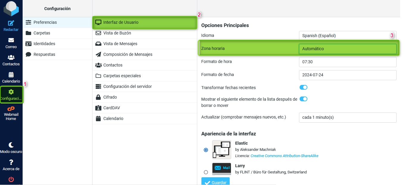 To modify the time zone of your emails, you need to follow these steps after accessing your Webmail:
