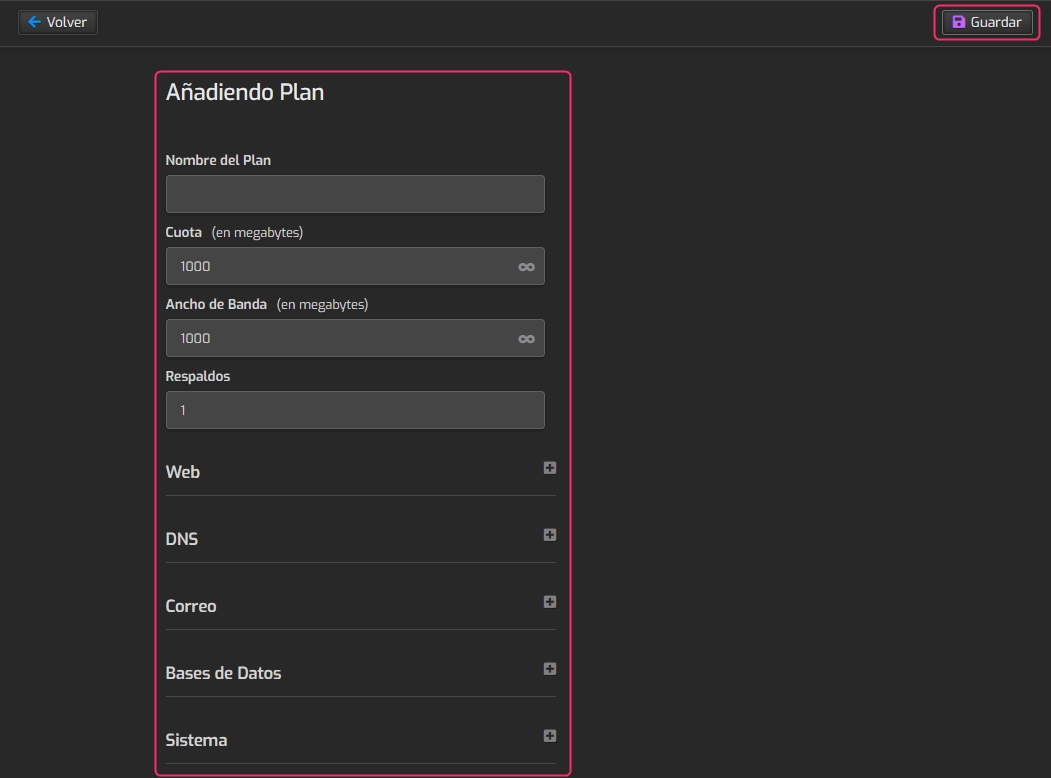 Once you have defined the hosting plan, you can save it by clicking the Save button at the top right.