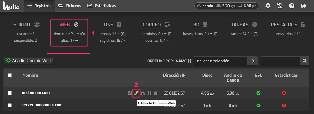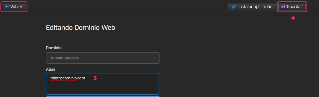 Click on the pencil icon next to the domain where you want to add the Alias.