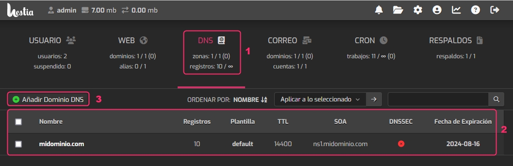 How to create the DNS Zone of a domain in HestiaCP?