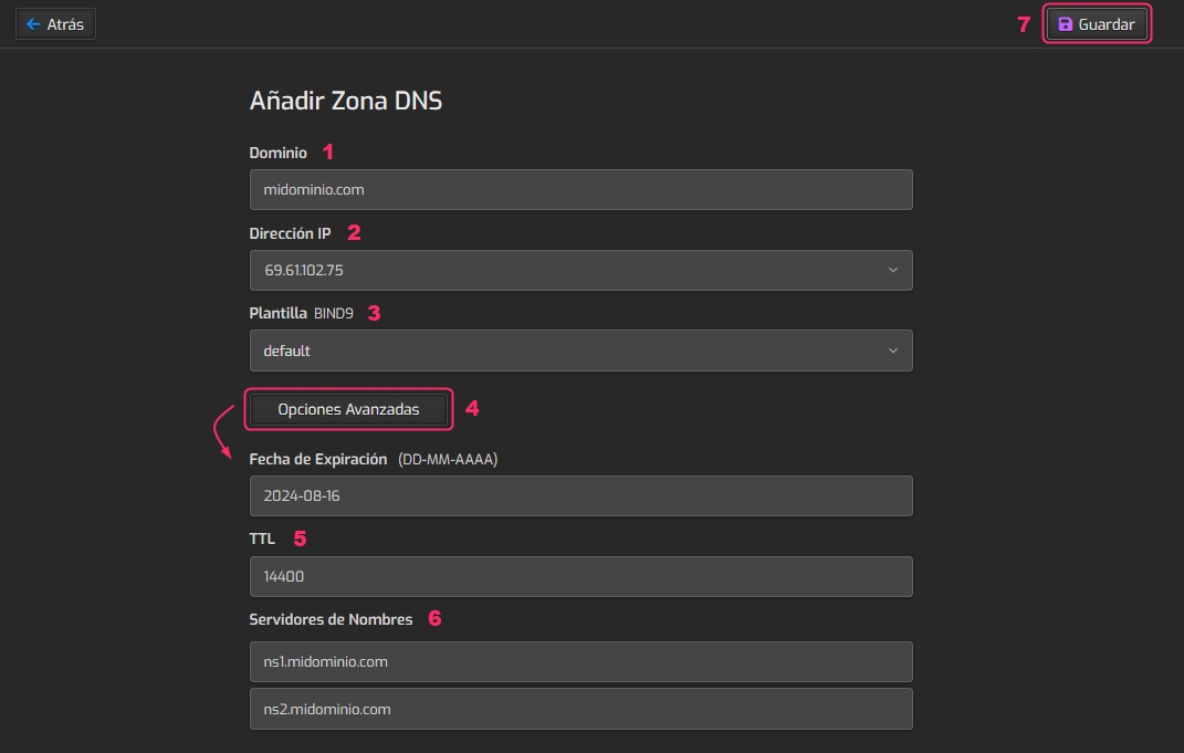 You could save the DNS zone with the Save button in step 7, but by clicking the Advanced Options button, additional options that may be useful will be displayed.