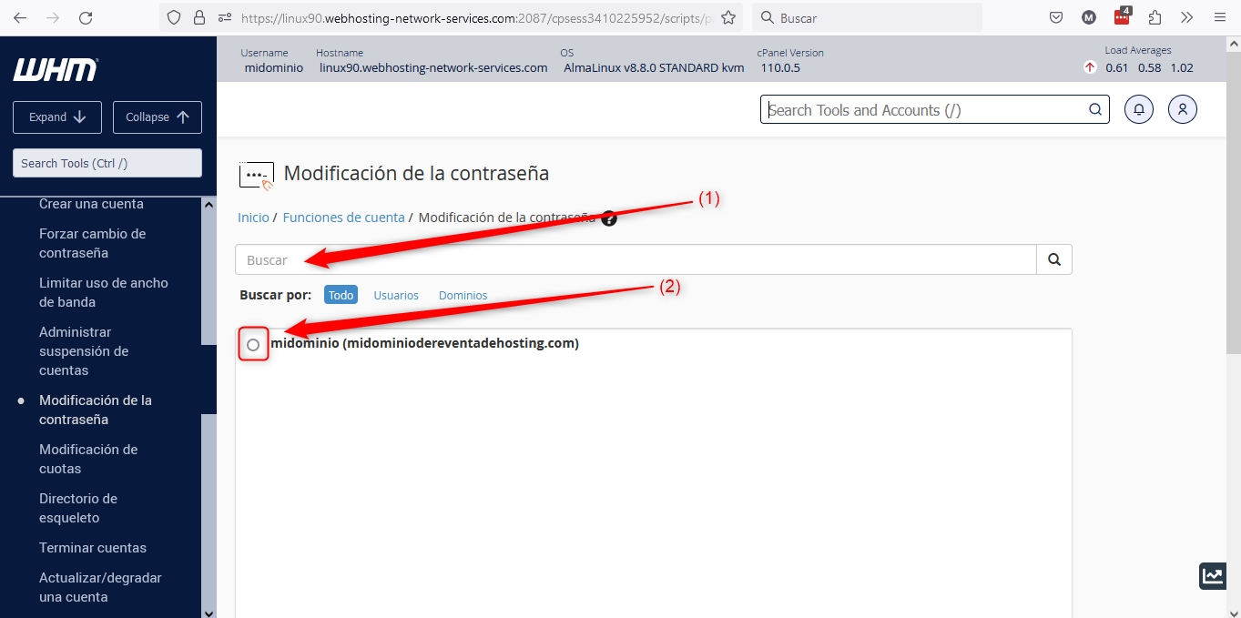 If you have multiple domains, you can specify the domain whose password you want to change, then click on (2) to select it.