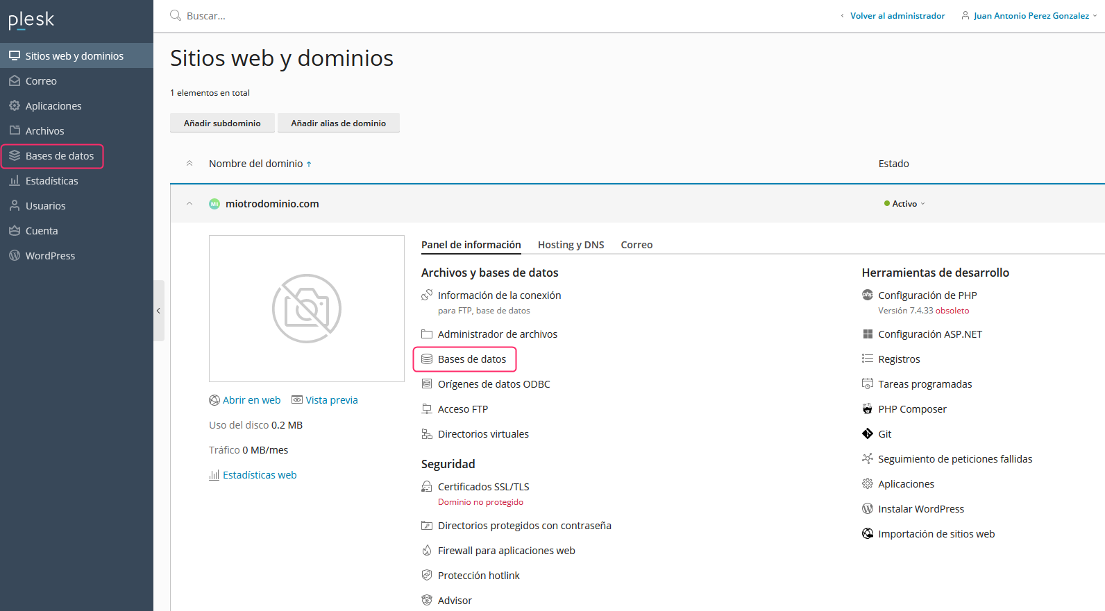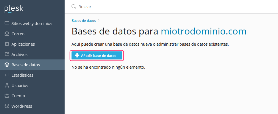 <figure><img src="https://content.gitbook.com/content/Ofi0Qrfm7RZh6yIwbvAQ/blobs/Dv9hwBFPpUJT8Lr6yysF/PleskBaseDeDatos01.png" alt=""><figcaption></figcaption></figure>