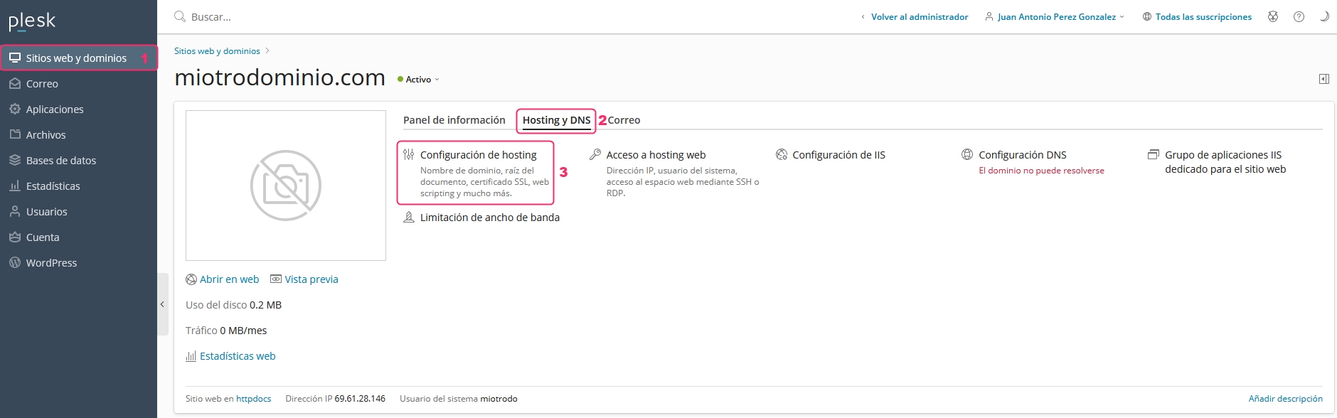 Then click on the Hosting & DNS tab and then enter Hosting Settings.