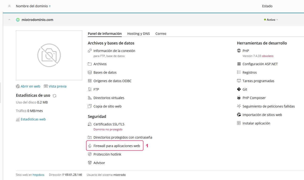 In the main menu of your account within Plesk, go to Web Application Firewall.