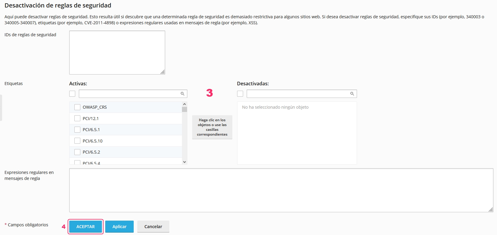 Below, you will find the configuration of the ModSecurity rules. This is an advanced section and should only be configured by the webmaster or specialized technician.
