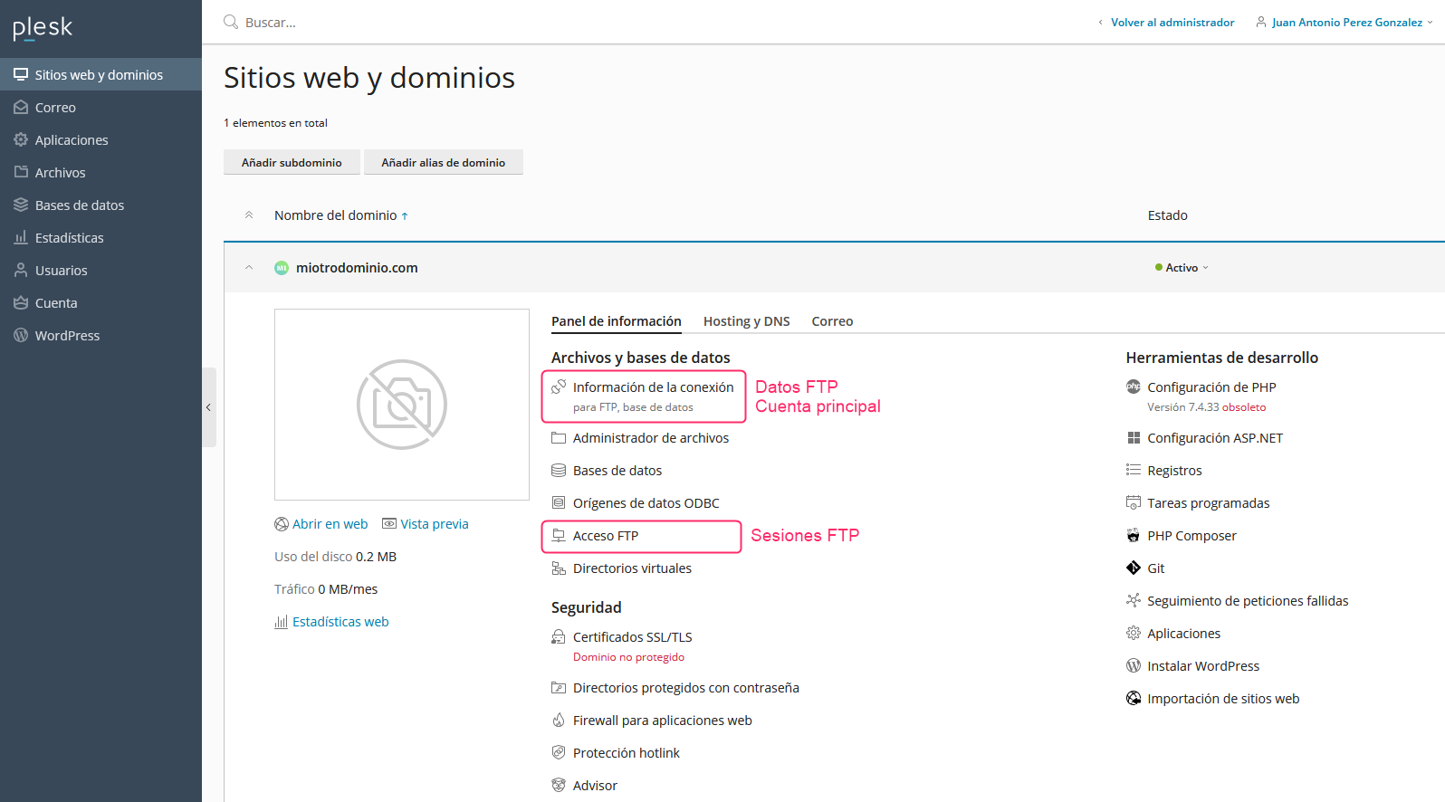 How to connect via FTP in Plesk?