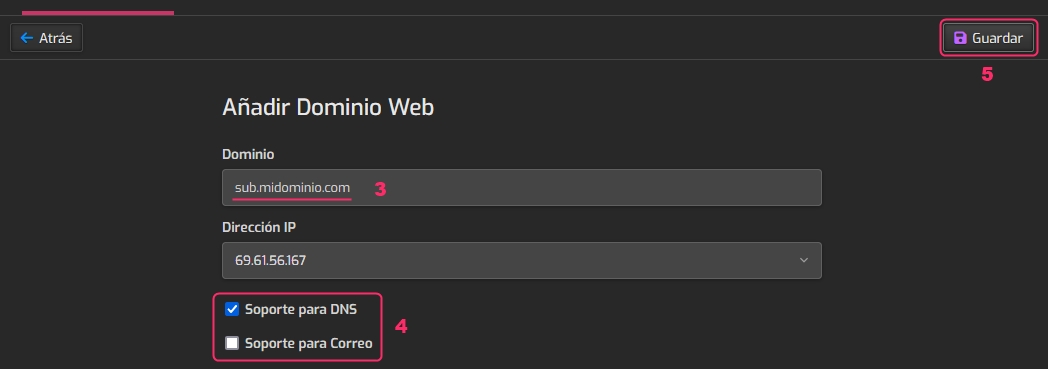 Check the DNS Support option. The Mail Support checkbox will allow you to create email accounts with the new subdomain. Its activation is optional.