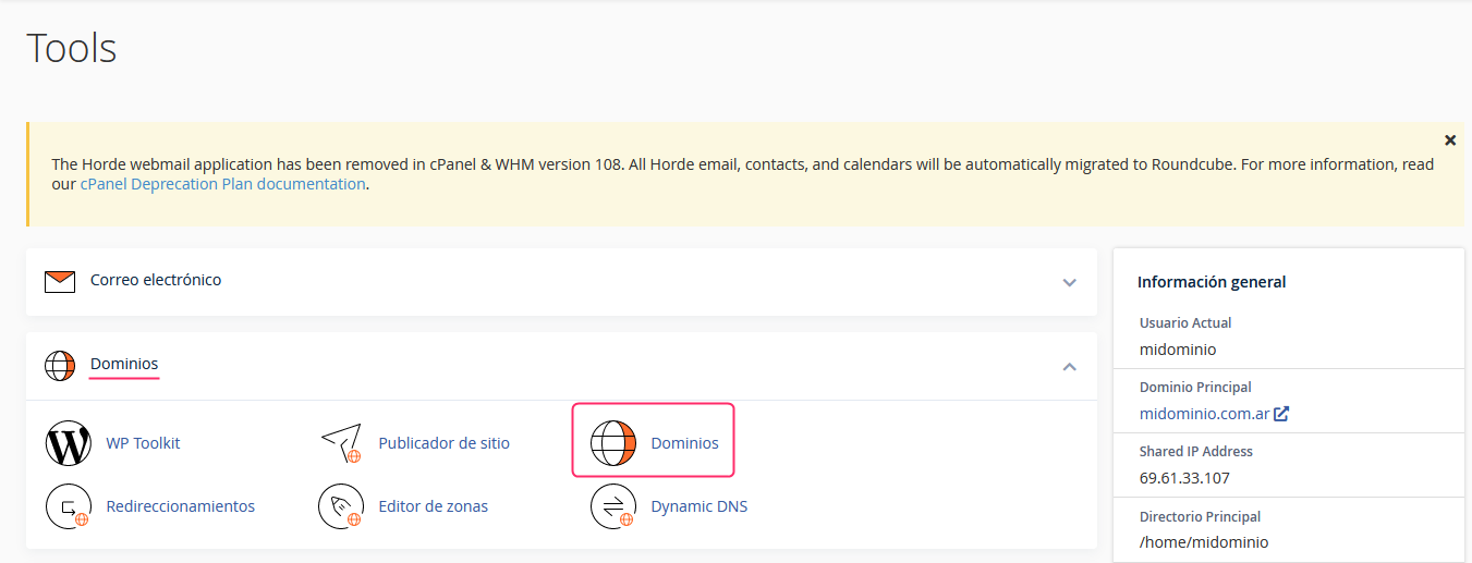 To create subdomains, aliases, and additional domains, access the Domains tool within the Domains box.